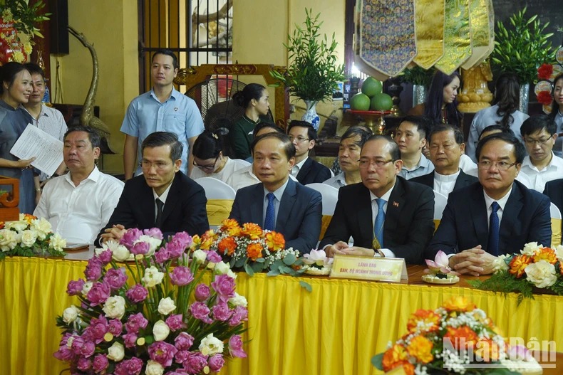 Cùng dự có đồng chí Nguyễn Văn Thắng, Ủy viên Trung ương Đảng, Bộ trưởng Giao thông vận tải; đồng chí Phạm Tất Thắng, Ủy viên Trung ương Đảng, Phó Trưởng ban Thường trực Ban Dân vận Trung ương; Phó Chủ tịch Ủy ban Trung ương Mặt trận Tổ quốc Việt Nam Hoàng Công Thủy; Hòa thượng Thích Thanh Dũng - Phó Pháp chủ, Chánh Thư ký Hội đồng Chứng minh Trung ương Giáo hội Phật giáo Việt Nam; Hòa thượng Thích Thiện Nhơn, Phó Pháp chủ Hội đồng Chứng minh, Chủ tịch Hội đồng Trị sự Trung ương Giáo hội Phật giáo Việt Nam; Hòa thượng Thích Thanh Dục, Phó Pháp chủ Hội đồng Chứng minh Trung ương Giáo hội Phật giáo Việt Nam; chư tôn giáo phẩm lãnh đạo Hội đồng Chứng minh, Hội đồng Trị sự Giáo hội Phật giáo Việt Nam; lãnh đạo các ban, bộ, ngành, cơ quan Trung ương và thành phố Hà Nội.