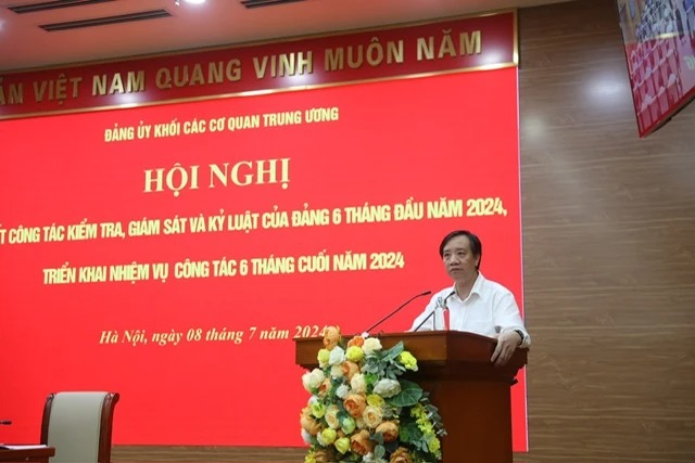 Tại hội nghị, Chủ nhiệm Ủy ban kiểm tra Đảng ủy Khối Nguyễn Thành Nam cho biết, 6 tháng đầu năm 2024, cấp ủy, tổ chức đảng, ủy ban kiểm tra các cấp trong Đảng bộ Khối đã kịp thời tổ chức quán triệt và cụ thể hóa các quy định, hướng dẫn của Trung ương về công tác kiểm tra, giám sát và kỷ luật của Đảng; xây dựng, ban hành và thực hiện chương trình kiểm tra, giám sát năm 2024.