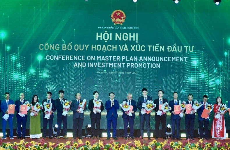 Nhân dịp này, trước sự chứng kiến của Thủ tướng Phạm Minh Chính, lãnh đạo tỉnh Hưng Yên trao 24 quyết định chủ trương đầu tư, giấy chứng nhận đăng ký đầu tư, biên bản ghi nhớ, thỏa thuận hợp tác với tổng số vốn 763 triệu USD và 10 nghìn tỷ đồng cho các doanh nghiệp, nhà đầu tư.