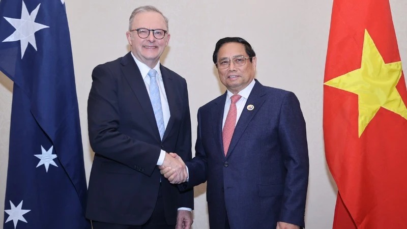 Thủ tướng Phạm Minh Chính hội kiến Thủ tướng Australia Anthony Albanese. (Ảnh: Nhật Bắc/VGP)