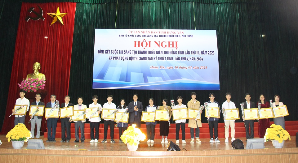 Ngày 10/1, Ban Tổ chức Cuộc thi Sáng tạo thanh thiếu niên, nhi đồng tỉnh Hưng Yên lần thứ III, năm 2023 tổ chức hội nghị tổng kết cuộc thi Sáng tạo thanh thiếu niên, nhi đồng tỉnh Hưng Yên lần thứ III năm 2023 (viết tắt là cuộc thi); phát động Hội thi Sáng tạo Kỹ thuật tỉnh Hưng Yên lần thứ V, năm 2024 (viết tắt là hội thi).