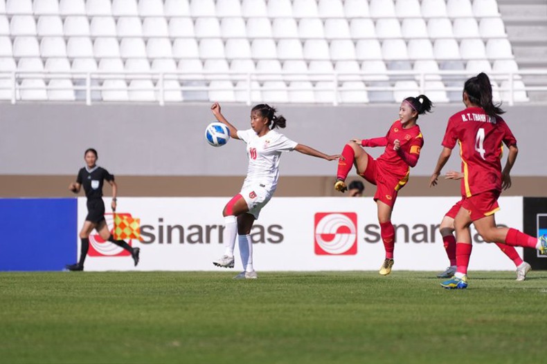 U19 nữ Myanmar (áo trắng) có bàn thắng mở tỷ số ở phút thứ 10.