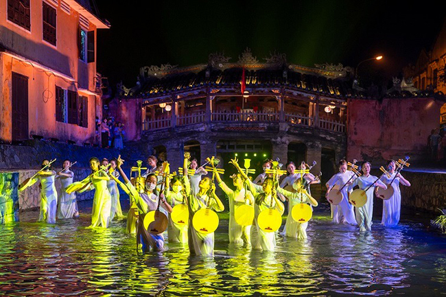 Chương trình biểu diễn nghệ thuật ngoài trời "Ký ức Hội An" tại phố cổ Hội An, tỉnh Quảng Nam. (Nguồn: vnexpress.net)
