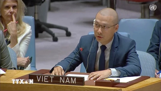 Phát biểu tại phiên họp, Công sứ Nguyễn Hoàng Nguyên - Phó Trưởng Phái đoàn Thường trực Việt Nam tại Liên hợp quốc, nhấn mạnh ưu tiên hàng đầu của cộng đồng quốc tế cũng như mỗi quốc gia là giải quyết nguyên nhân gốc rễ của xung đột thông qua thúc đẩy phát triển bền vững, giúp trẻ em tránh được hậu quả của chiến tranh và bạo lực.