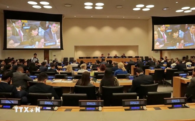 Đoàn Việt Nam tham dự phiên thảo luận. (Ảnh: Thanh Tuấn/TTXVN)