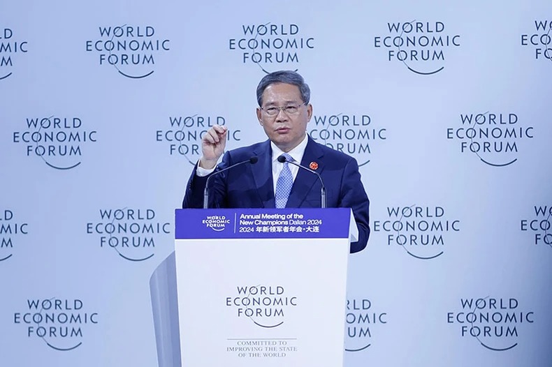 Thủ tướng Trung Quốc Lý Cường phát biểu tại Hội nghị WEF Đại Liên 2024.