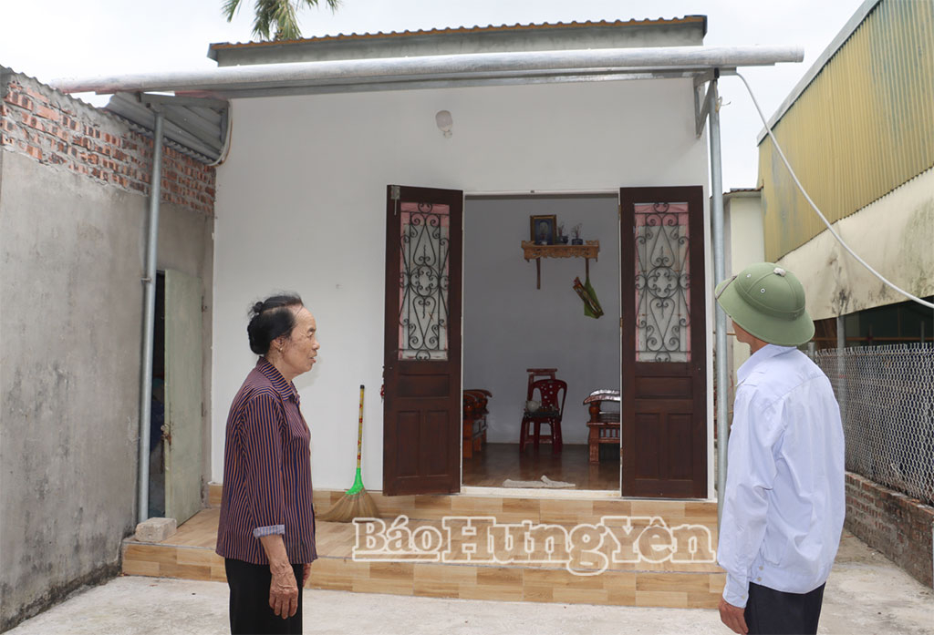 Ông Phạm Duy Tuấn (thôn Hoành Từ) sức khỏe yếu, hay đi lang thang, thuộc hộ nghèo, sống một mình trong căn nhà anh trai xây cho từ lâu, nay đã xuống cấp. Năm 2025, cơn bão số 3 đổ bộ đã khiến căn nhà của ông Tuấn bị tốc mái, đổ tường. Cuộc sống của ông Tuấn bấy lâu đều dựa vào sự trợ cấp của người thân. Vì vậy, ông không có kinh phí để làm nhà. Chia sẻ với hoàn cảnh khó khăn của ông Tuấn, Ủy ban MTTQ Việt Nam xã kêu gọi nguồn xã hội hóa hỗ trợ 60 triệu đồng cùng với tiền người thân hỗ trợ, giúp ông xây ngôi nhà khang trang ngay trên nền ngôi nhà cũ. Sau hơn 2 tháng khẩn trương xây dựng, ngôi nhà rộng gần 30m2 với tổng kinh phí gần 150 triệu đồng đã được khánh thành, bàn giao cho ông Tuấn về ở. Bà Phạm Thị Tầm, chị gái của ông Tuấn thổ lộ: Trước đây, mỗi khi mưa bão, tôi phải đón em trai sang nhà trú tạm. Nay được cấp ủy, chính quyền, các đơn vị quan tâm, hỗ trợ kinh phí xây dựng ngôi nhà mới vững chãi, chị em tôi rất mừng. Có nhà mới, em trai tôi vui vẻ hơn.