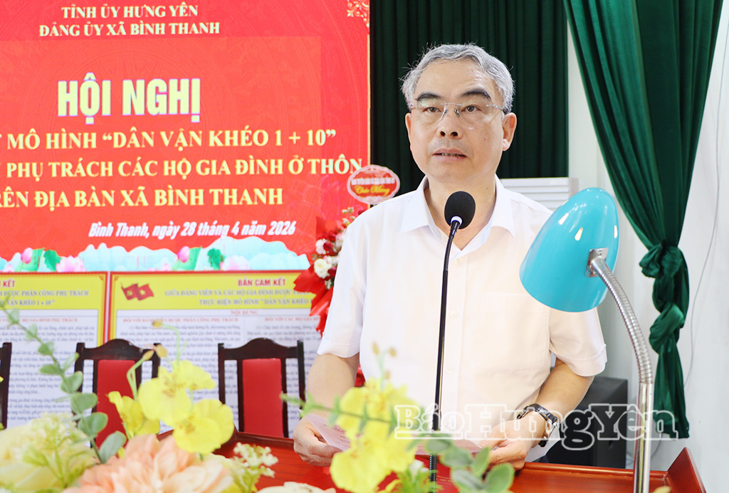 Phát biểu tại hội nghị, đồng chí Phạm Đồng Thụy, Ủy viên Ban Thường vụ Tỉnh ủy, Giám đốc Sở Giáo dục và Đào tạo nhấn mạnh hiệu quả của mô hình phụ thuộc trước hết vào tinh thần trách nhiệm và sự gương mẫu của mỗi cán bộ, đảng viên. Vì vậy, các đảng viên được phân công phải thực sự “gần dân, sát dân, hiểu dân”, trở thành cầu nối tin cậy giữa cấp ủy, chính quyền với Nhân dân; chủ động nắm bắt tâm tư, nguyện vọng chính đáng của người dân để kịp thời phản ánh, đề xuất giải pháp phù hợp. Đồng chí yêu cầu Đảng ủy xã Bình Thanh cần phân công nhiệm vụ rõ ràng, cụ thể, gắn trách nhiệm cá nhân với kết quả thực hiện ở từng thôn, từng hộ dân; lấy hiệu quả công việc làm thước đo quan trọng trong đánh giá, xếp loại đảng viên. Trong quá trình triển khai, cần phát huy cao độ nguyên tắc tập trung dân chủ, tăng cường đoàn kết nội bộ, lan tỏa tinh thần trách nhiệm trong toàn hệ thống chính trị. Các ban, ngành, đoàn thể trong xã phải vào cuộc đồng bộ, chặt chẽ, tạo sức mạnh tổng hợp để mô hình “Dân vận khéo 1+10” được triển khai hiệu quả, thực chất, góp phần nâng cao đời sống Nhân dân và giữ vững ổn định cơ sở.