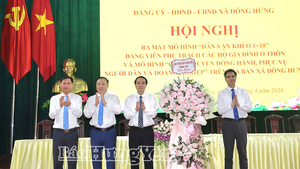 Sáng ngày 28/4, xã Đông Hưng tổ chức hội nghị ra mắt mô hình “Dân vận khéo 1+10” và mô hình “Chính quyền đồng hành, phục vụ người dân và doanh nghiệp” trên địa bàn xã. Đồng chí Nguyễn Văn Chiến, Ủy viên Ban Thường vụ Tỉnh ủy, Trưởng ban Tuyên giáo và Dân vận Tỉnh ủy dự hội nghị.