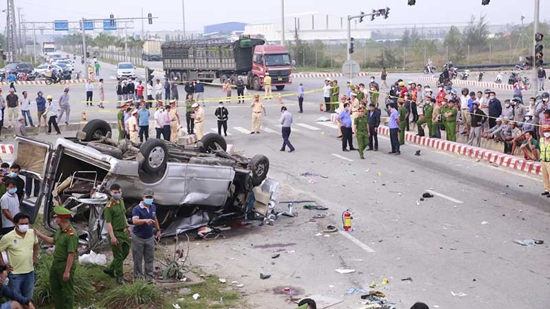 Lực lượng chức năng cứu hộ, cứu nạn vụ tai nạn giao thông đặc biệt nghiêm trọng xảy ra tại huyện Núi Thành (Quảng Nam) ngày 14/2/2023.