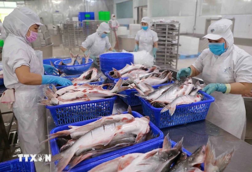 Chế biến cá tra xuất khẩu ở nhà máy của Tập đoàn Sao Mai, tỉnh Đồng Tháp. (Ảnh: Vũ Sinh/TTXVN)