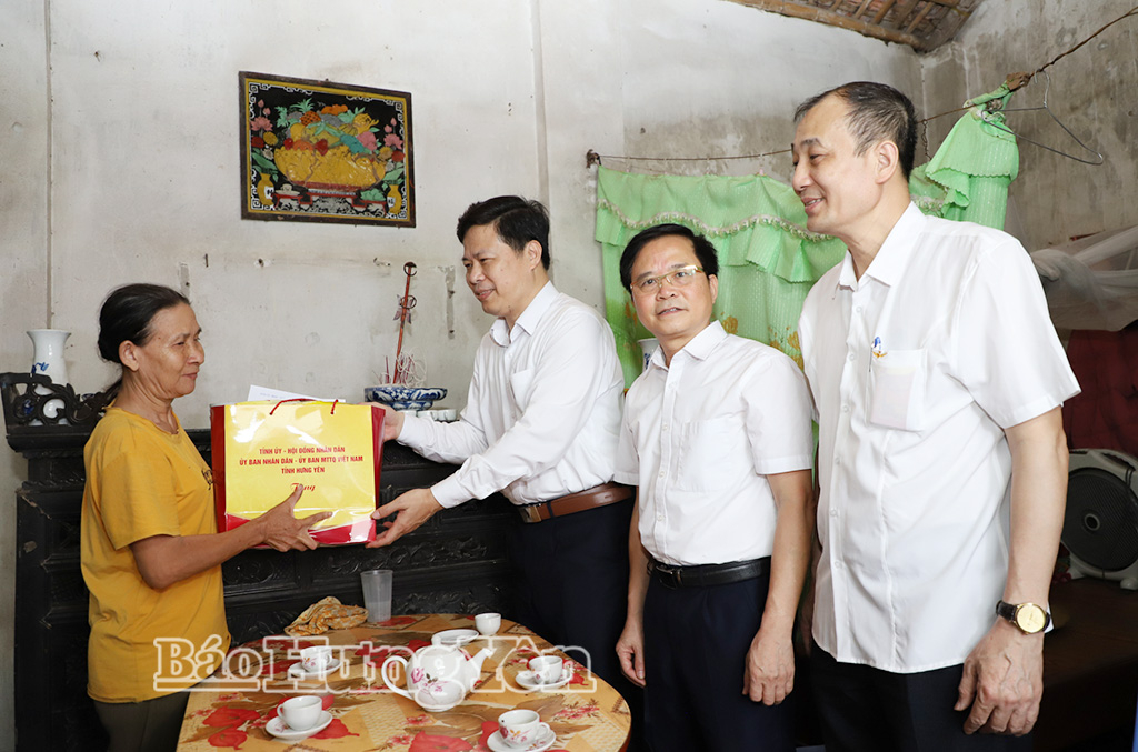 Tại Trung tâm Điều dưỡng, chăm sóc người có công tỉnh (phường Phố Hiến), đồng chí Trần Quốc Toản, Phó Bí thư Thường trực Tỉnh ủy, Chủ tịch Ủy ban MTTQ Việt Nam tỉnh đã đến thăm, tặng quà các ông: Dương Thanh Hồng, sinh năm 1952, thường trú tại phường Lê Đại Hành (thành phố Hải Phòng), thương binh loại A hạng ¼, tỷ lệ thương tật 81%; Lưu Ngọc Thanh, sinh năm 1942, thường trú tại xã Nguyễn Văn Linh, bệnh binh 71%, thương binh hạng 4/4, nhiễm chất độc hóa học loại 2, sống cô đơn không nơi nương tựa. Đồng chí Phó Bí thư Thường trực Tỉnh ủy, Chủ tịch Ủy ban MTTQ Việt Nam tỉnh đã ân cần thăm hỏi tình hình sức khoẻ các đồng chí thương, bệnh binh; bày tỏ lòng trân trọng những đóng góp của các đồng chí cho sự nghiệp đấu tranh giành độc lập của dân tộc. Đồng thời đề nghị các sở, ngành, địa phương và Trung tâm Điều dưỡng, chăm sóc người có công tỉnh luôn quan tâm giúp đỡ các gia đình chính sách để kịp thời động viên và chia sẻ với những đau thương mất mát do chiến tranh để lại. Sở Nội vụ phối hợp với Sở Y tế và các bệnh viện có phương án điều trị chuyên sâu cho các thương, bệnh binh, người có công với cách mạng.