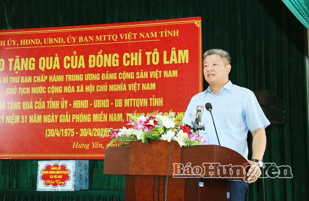 Sáng ngày 28/4, đồng chí Nguyễn Mạnh Quyền, Phó Bí thư Tỉnh ủy, Chủ tịch UBND tỉnh tới thăm, tặng quà các thương binh, bệnh binh nặng đang được nuôi dưỡng, chăm sóc tại Trung tâm Điều dưỡng, chăm sóc người có công tỉnh Hưng Yên cơ sở 3 và các hộ nghèo trên địa bàn xã Vũ Thư nhân kỷ niệm 51 năm Ngày giải phóng miền Nam, thống nhất đất nước (30/4/1975 - 30/4/2026).