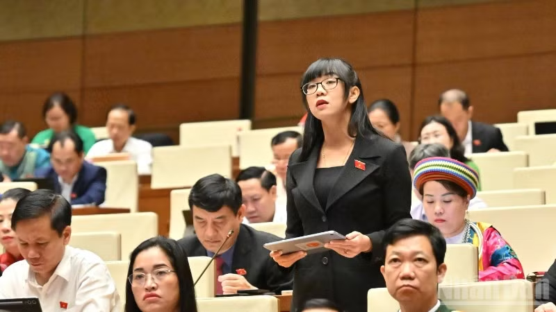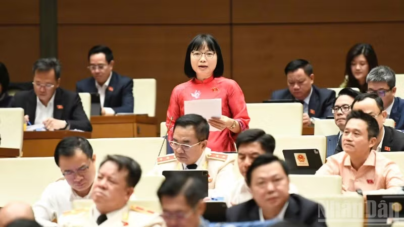 Đại biểu Nguyễn Thị Việt Nga (Phó Trưởng Đoàn đại biểu Quốc hội chuyên trách thành phố Hải Phòng) phát biểu tại hội trường. (Ảnh: DUY LINH)