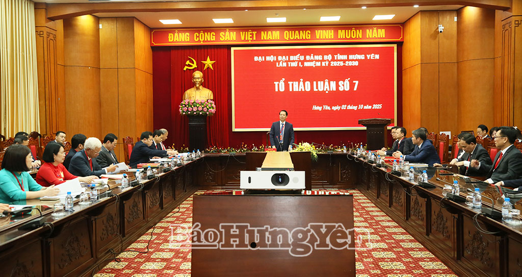 Trong phiên làm việc chiều ngày 2/10, Đại hội đại biểu Đảng bộ tỉnh Hưng Yên lần thứ I, nhiệm kỳ 2025 - 2030 tiến hành chia 9 tổ thảo luận và tiếp tục phiên làm việc tại hội trường tham gia ý kiến vào dự thảo Văn kiện Đại hội Đảng bộ tỉnh lần thứ I, nhiệm kỳ 2025 - 2030 và dự thảo Văn kiện Đại hội đại biểu toàn quốc lần thứ XIV của Đảng.