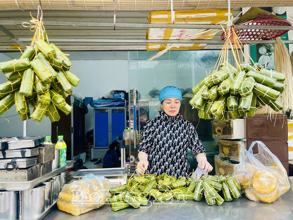 4 giờ sáng, khi sương muối còn giăng mờ trên những rặng nhãn, ánh đèn tại cơ sở sản xuất giò bì Dương Lữ (Phố Xuôi, xã Tiên Lữ) đã rực sáng. Trong xưởng, tiếng máy xay thịt, tiếng thái bì và tiếng nói cười của nhân công tạo nên không khí hối hả đặc trưng của những ngày giáp Tết.Chị Nguyễn Thị Thanh Lữ, chủ cơ sở Dương Lữ, vừa nhanh tay kiểm tra những mẻ giò vừa ra lò, vừa chia sẻ: Gia đình tôi gắn bó với nghề này đã hơn 30 năm. Ngày thường đã bận, nhưng dịp Tết thực sự là đợt cao điểm. Trung bình mỗi ngày, cơ sở cung ứng ra thị trường khoảng 5 tạ giò các loại và trên 2.500 chiếc giò nhỏ, tăng gấp 4 – 5 lần so với ngày thường. Để kịp tiến độ giao hàng cho khách trước trưa 30 Tết, chúng tôi phải thuê thêm lao động địa phương và làm việc gần như không nghỉ.