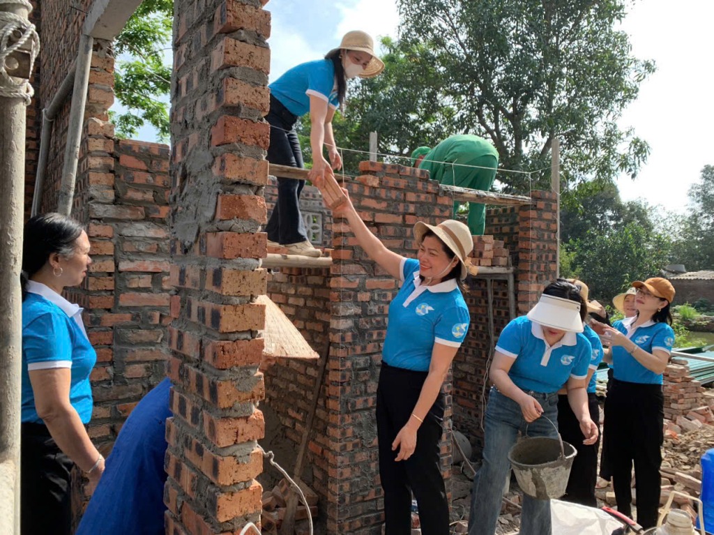Cán bộ, hội viên Hội Liên hiệp phụ nữ thị xã Mỹ Hào ủng hộ ngày công lao động xây dựng “Nhà mái ấm tình thương” cho chị Khúc Thị Lan, xã Cẩm Xá