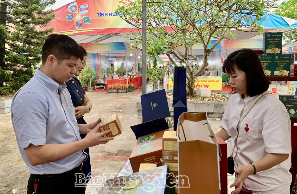 Gian hàng của Hợp tác xã (HTX) Nông nghiệp Thủy sản Hưng Thịnh (xã Quang Hưng) là một trong những điểm thu hút đông khách tại Liên hoan. Dù còn khoảng 3 tháng nữa mới đến vụ nhãn và gần 1 tháng nữa mới vào chính vụ vải trứng, HTX đã đưa ra giới thiệu những sản phẩm đầu mùa. Ông Vũ Hồng Ngân, Phó Giám đốc HTX cho biết: Nhờ chủ động áp dụng các biện pháp kỹ thuật điều chỉnh thời vụ, đơn vị đã đưa sản phẩm ra thị trường sớm, tạo lợi thế cạnh tranh và thu hút sự quan tâm của người tiêu dùng. Thông qua Liên hoan, chúng tôi cũng có dịp lắng nghe ý kiến người tiêu dùng để tiếp tục hoàn thiện, nâng cao chất lượng sản phẩm trong thời gian tới. Lần đầu tham gia Liên hoan, HTX mang đến 4 sản phẩm OCOP 3 sao gồm: nhãn quả tươi, long nhãn, vải trứng Hưng Yên và hoa hồng sấy khô.